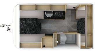A gyártó nagyméretű lakókocsi modellje hőszigetelt szendvics-panelekből készül, kiváló hőszigetelést és masszív szerkezetet biztosítva. Tágas és modern belső tere egy háromtagú család kényelmét szem előtt tartva lett kialakítva, de párok számára is ideális pihenőhely.